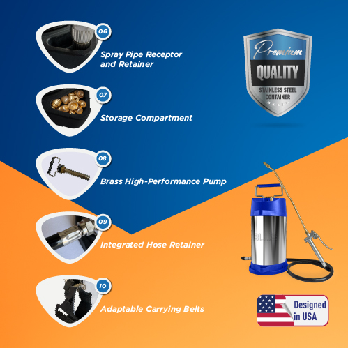 Equipped with a high-efficiency brass pump and integrated hose holder, this product ensures hassle-free performance.