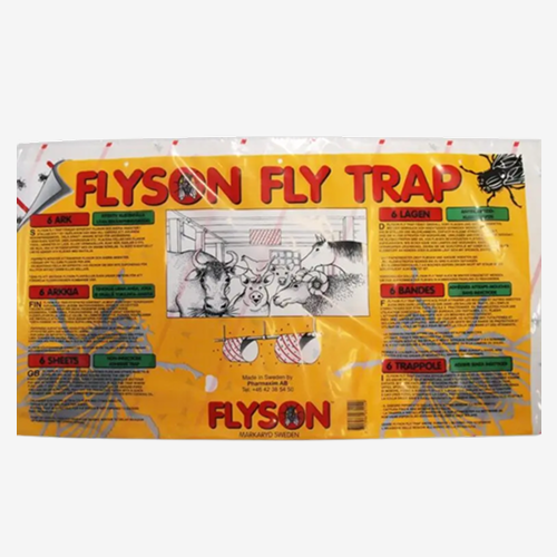 Easily divided into smaller sections for use in homes, offices, changing-rooms etc. Place the trap where flies like it best, close to lamps and heat sorces or around pipes and cables. Pull off the protective paper with quick movement and remove any adhesive on hands or clothes with cooking oil. The paper’s pattern attracts flies and other insects. Catches up to 5000 flies per sheet. A fitted trap is effective for 4-8 weeks if not exposed to excess dust or sunlight.
